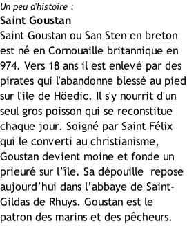 L'église Saint Gildas, construite entre 1623 et 1641. On y accède par un porche Renaissance. A voir, adossé au maître autel son magnifique retable en marbre(1657) de Olivier Martinet. Notez les boiseries du XVIIIe siècle dans les chapelles latérales. La rue du chateau ( du nom de l'ancien chateau vendu en 1560) sur ordre de Henri II roi de France) est bordée de jolies maisons du 17ème. et 18ème. Galeries de peinture. Le premier pont de pierre a été construit au 13ème siècle. Sa forme actuelle remonte au 18ème. Remarquez le petit batiment d'octroi. la Goélette musée "Saint Sauveur" Réplique  des goélettes de cabotage en service au XIXe siècle,sa cale est transformée en musée. Elle  présente la vie portuaire de St.-Goustan. Elle vous fera revivre la vie des marins et des habitants. Le quartier Saint Goustan. A partir de la Place Saint Sauveur( maisons du 15ème) perdez vous dans les charmantes ruelles jusqu'à l'église de  Saint Sauveur ( 15ème). Suivez la rivière à pieds, le spectacle est paisible, la promenade agréable. Promenade du Loch. Revenez d'Auray par cette promenade en sous bois. De la corniche la vue est suberbe sur le port de Saint Goustan, son pont de Pierre , la place Saint Sauveur et le port de plaisance. Capitainerie