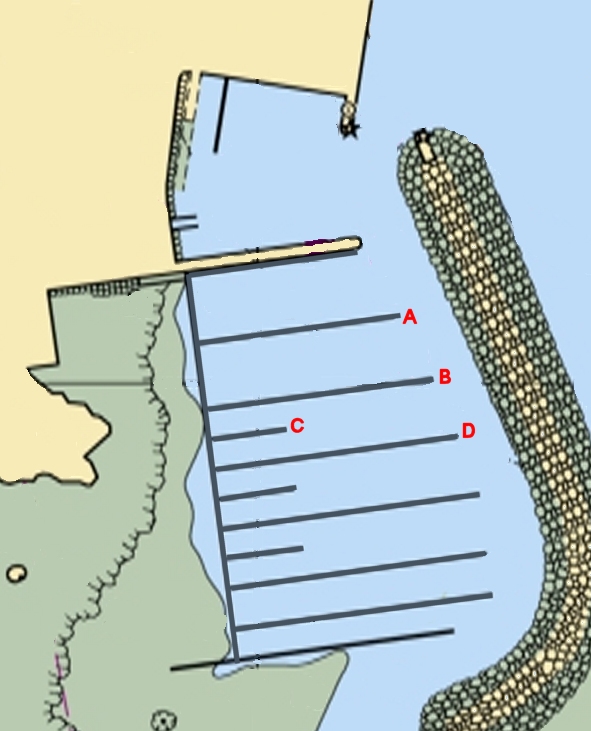 Au bout du môle d’entrée bien repérer les trois feux superposés. Si ces feux sont vert blanc vert , c’est une interdiction de rentrer.