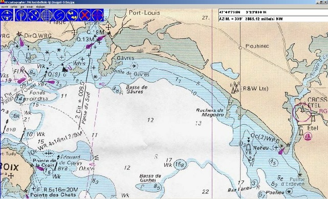 Votre bureau Jpcarto sur votre table à carte Des menus simples On peut ouvrir  deux cartes en  Même temps Une recherche  Automatique du Gps ( filaire ou Bluetooth) L'azimuth et la distance d'un point recherché La position géographique du curseur Fonction zoom Déplacement  de la carte :  - Clavier  - Molette  - Souris Un bureau clair et bien documenté